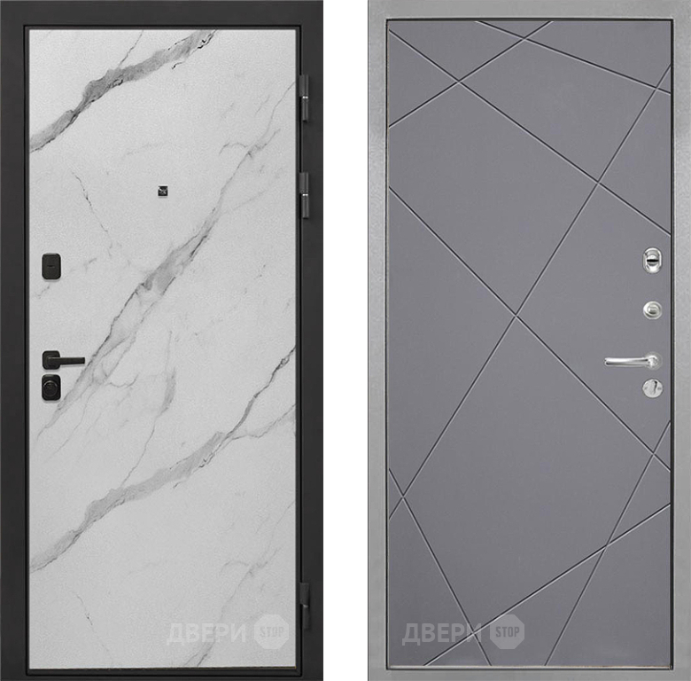 Входная Дверь Интекрон (INTECRON) Профит Black Мрамор Арктик Лучи-М Графит софт 960x2050 мм